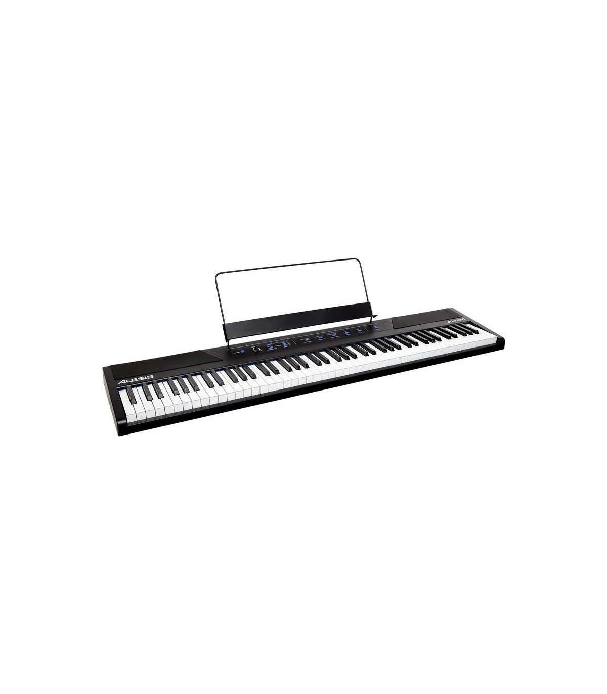 Pian digital Alesis Concert cu 88 de clape semi-grele cu răspuns tactil reglabil, 10 voci premium, polifonie maximă de 128 de note, difuzoare de 20 de W, metronom încorporat, efecte de reverb și chorus, pedală de sustain și adaptor de alimentare incluse.