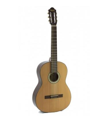 Chitară clasică pentru copii, cu şase corzi din nylon (trei din nylon plin, trei filate cu sârmă), mărime 1/2, scala 530mm, faţa din cedru (lemn masiv), spatele şi eclisa din placaj de stejar, gâtul din paltin, limba din palisandru. Finisaj lucios. Fabricat în Romania.