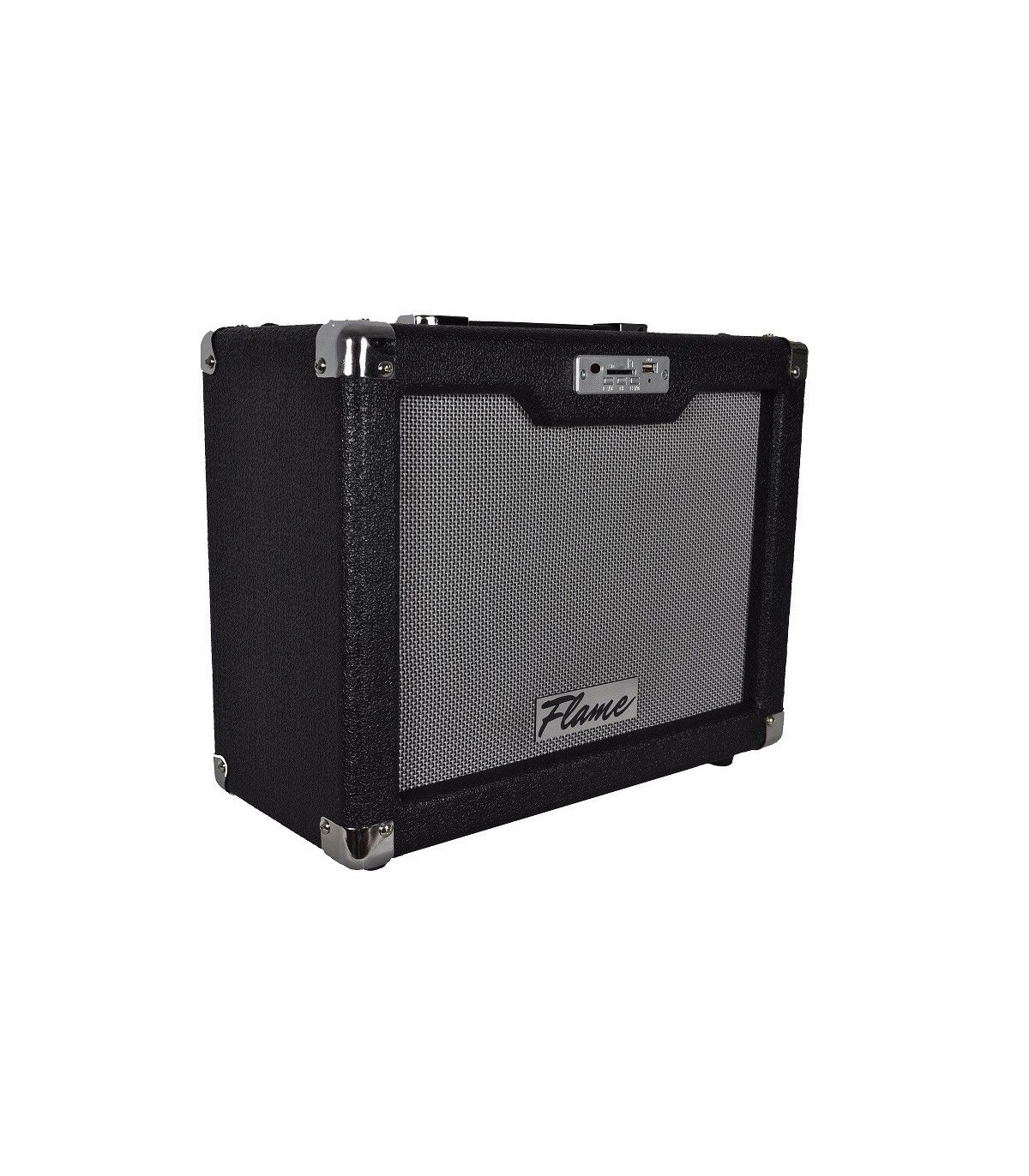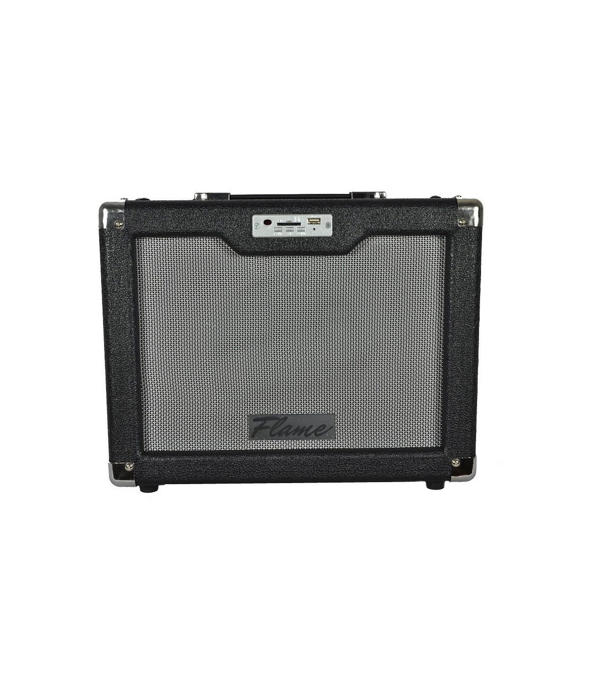 Amplificator chitara Flame G-25M, de 25W, difuzor de 8", cu un canal de intrare pentru chitara, USB, cititor de card SD, control pentru Gain si Volum, EQ pe 3 benzi, overdrive, prezenta, digital reverb, iesire pentru casti, frecventa raspuns: 45 Hz - 20 kHz, include telecomanda.