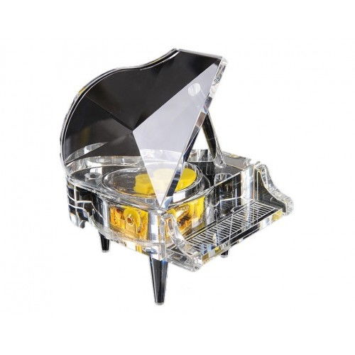 Cutiuta muzicala de cristal transparent in forma de pian