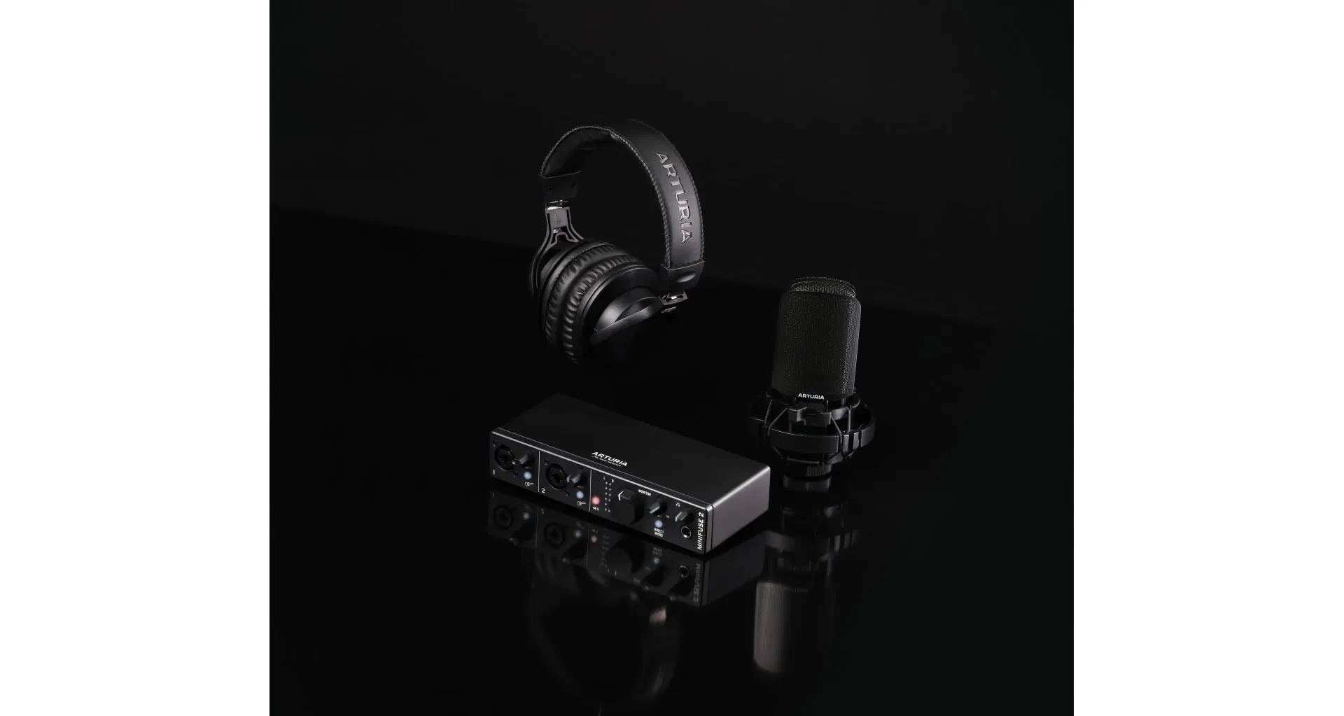 Pachet home studio ce contine toate uneltele necesare de care nevoie pentru a incepe sa faci muzica. Pachetul include o interfata USB Arturia MiniFuse 2 cu 2 intrari si 2 iesiri, un microfon condenser cardioid, o pereche de casti inchise, cablu XLR de 3 m si o colectie impresionanta de software-uri. Printre acestea se numara Ableton Live Lite, Analog Lab Intro, Antares Auto-Tune Unlimited si multe altele.