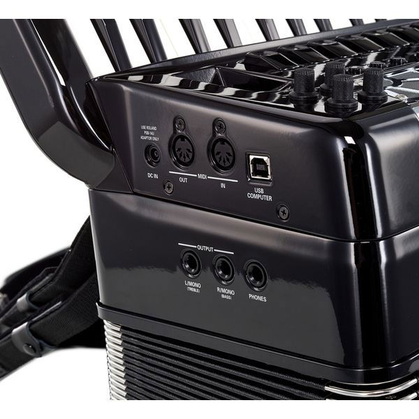 - Portul USB permite redarea de fisiere audio MP3/WAW. Doar conectati stick-ul USB in panoul frontal, apoi selectati melodia dorita cu un control foarte simplu. Cu o simpla apasare de buton performantele voastre pot fi inregisrate direct pe memoria USB, astfel este perfect pentru arhivare, evaluare sau pentru educatie. Prin portul USB de pe panoul lateral puteti conecta acordeonul FR-8x la un computer, pentru stocare de date, personalizarea seturilor de sunet sau pentru actualizarea de software.