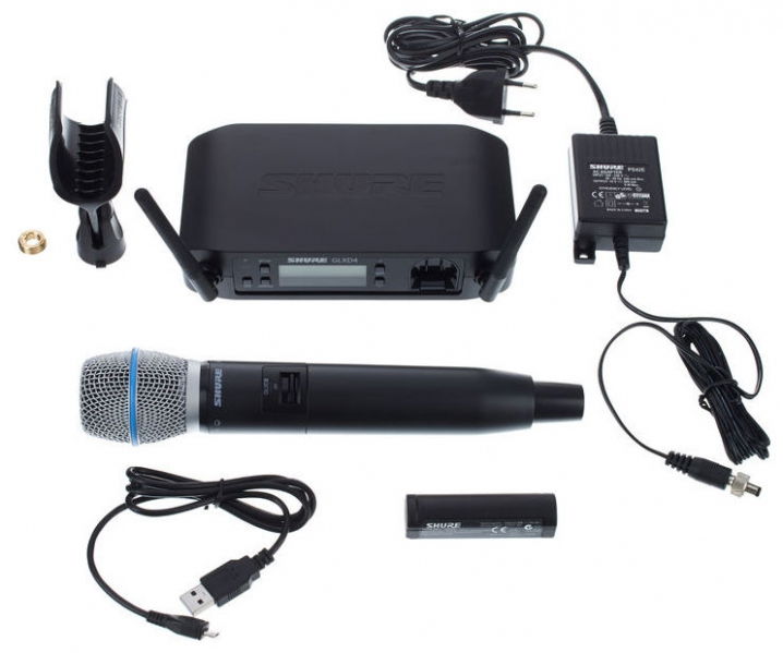 Sistemul include receptorul wireless GLXD4, transmițătorul de mână GLXD2/Beta87A și bateria reîncărcabilă (Li-Ion) SB902, care poate oferi până la 16 ore de utilizare continuă. Bateria se poate încărca și prin USB (cablu inclus).