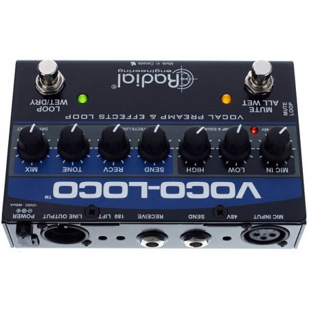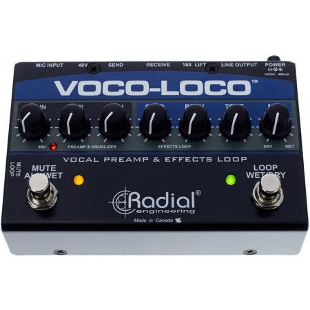 Comutator Efecte Radial Engineering Vocoloco este un preamplificator de microfon controlat prin picior ca și foot switch care permite comutarea efectelor care oferă soliștilor vocali sau instrumentiștilor acustici posibilitatea de a incorpora efecte de chitară în signal path-ul lor.